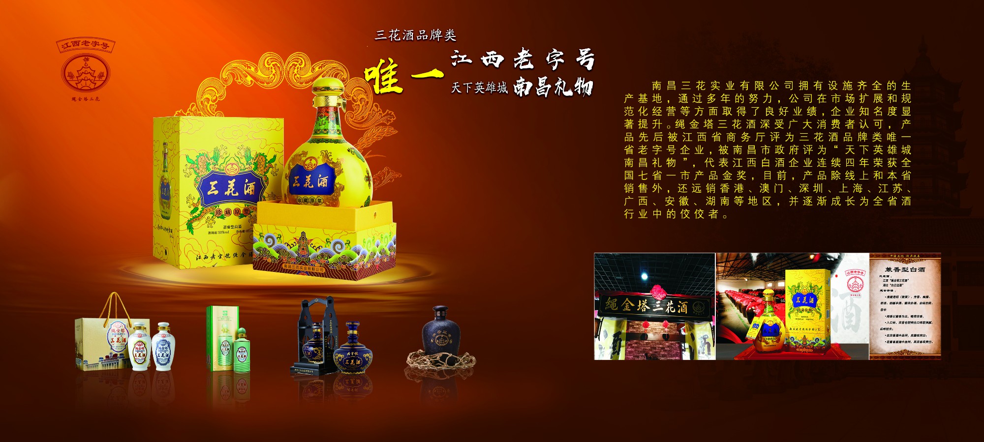 南昌三花實(shí)業(yè)有限公司前身是1952年創(chuàng)辦的國(guó)營(yíng)南昌市酒廠,當(dāng)時(shí)在南昌、鄱陽(yáng)及全省幾個(gè)市場(chǎng)供不應(yīng)求,三花酒也深深扎根老南昌人的記憶深處,幾十年歷經(jīng)浮沉,公司以傳承、振興民族品牌為己任、執(zhí)著、堅(jiān)守、傳承、挖掘、探索釀酒技術(shù)。產(chǎn)品延續(xù)了傳統(tǒng)釀造工藝外,還注入了現(xiàn)代科學(xué)工藝,在七省一市(云南省、湖南省、湖北省、福建省、廣西省、廣東省、江西省、重慶市)白酒行業(yè)質(zhì)量品鑒交流會(huì)上連續(xù)4年榮獲優(yōu)質(zhì)產(chǎn)品質(zhì)量金獎(jiǎng),2017年被江西省商務(wù)廳評(píng)為三花酒品牌類唯一江西省老字號(hào),2018年被南昌市旅發(fā)委評(píng)為“天下英雄城·南昌禮物”重點(diǎn)推薦禮物之一。公司長(zhǎng)期擔(dān)任江西省白酒協(xié)會(huì)常務(wù)理事單位、江西省食品工業(yè)協(xié)會(huì)副會(huì)長(zhǎng)單位、江西老字號(hào)企業(yè)聯(lián)盟理事單位。