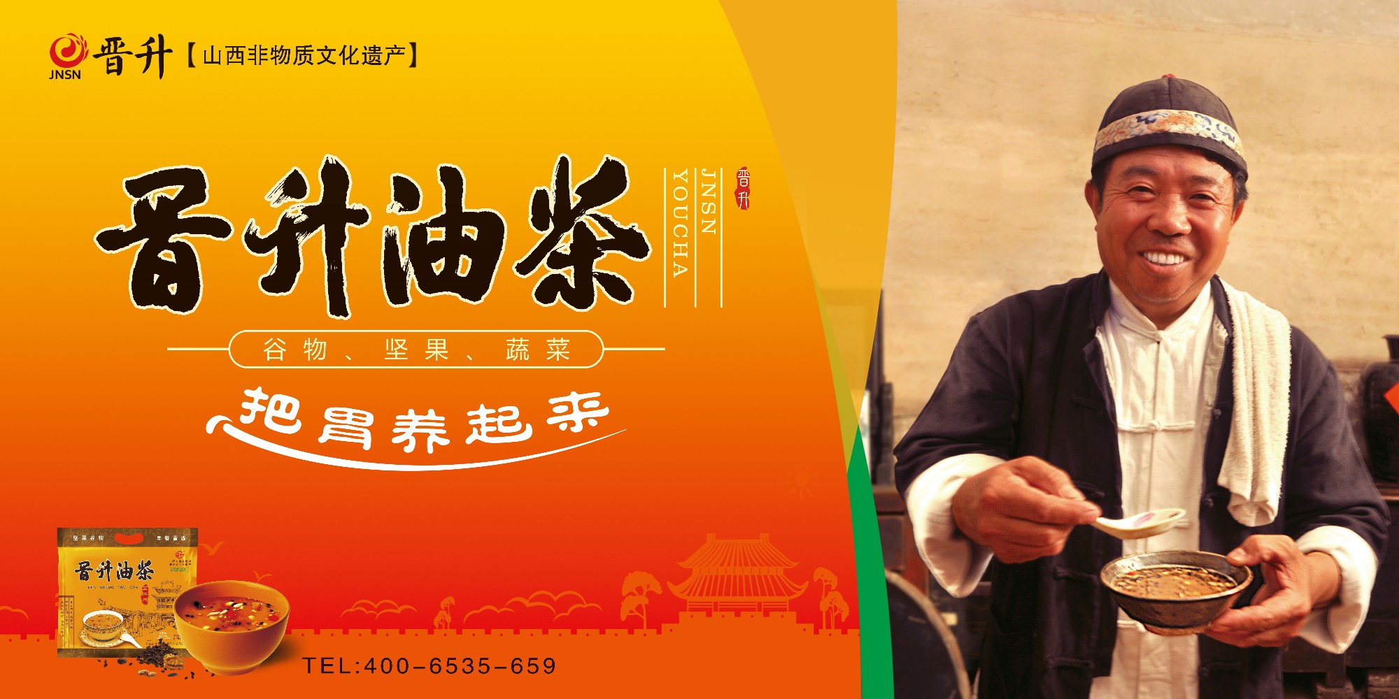 晉升油茶創(chuàng)立于1946年,經(jīng)過四代傳承,成為家喻戶曉的美食,晉升油茶遵循《黃帝內(nèi)經(jīng)》里“五谷為養(yǎng)”的養(yǎng)生理念,并依《本草綱目》物種屬性選用天然五谷雜糧,加工過程中無添加劑,營養(yǎng)全面,食用方便,符合現(xiàn)代“粗細(xì)平衡、食補(bǔ)健康”的健康飲食理念,是一款傳統(tǒng)與現(xiàn)代結(jié)合的佳品。晉升油茶是山西省著名商標(biāo),省級非物質(zhì)文化遺產(chǎn)。