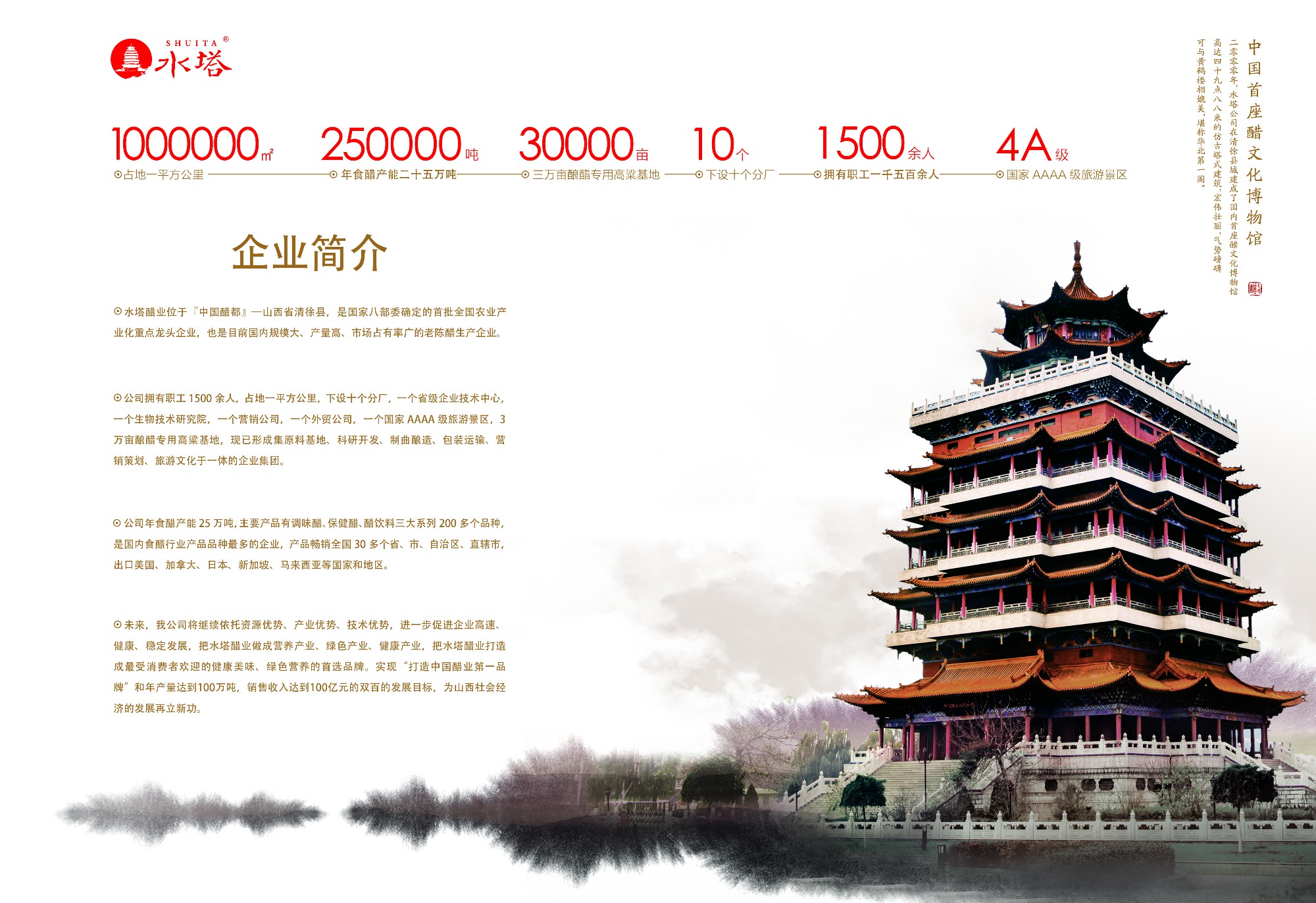 山西水塔醋業(yè)股份有限公司位于“中國醋都”——清徐縣,是國家八部委命名的全國農(nóng)業(yè)產(chǎn)業(yè)化重點龍頭企業(yè),也是目前國內(nèi)大型的老陳醋生產(chǎn)企業(yè)。