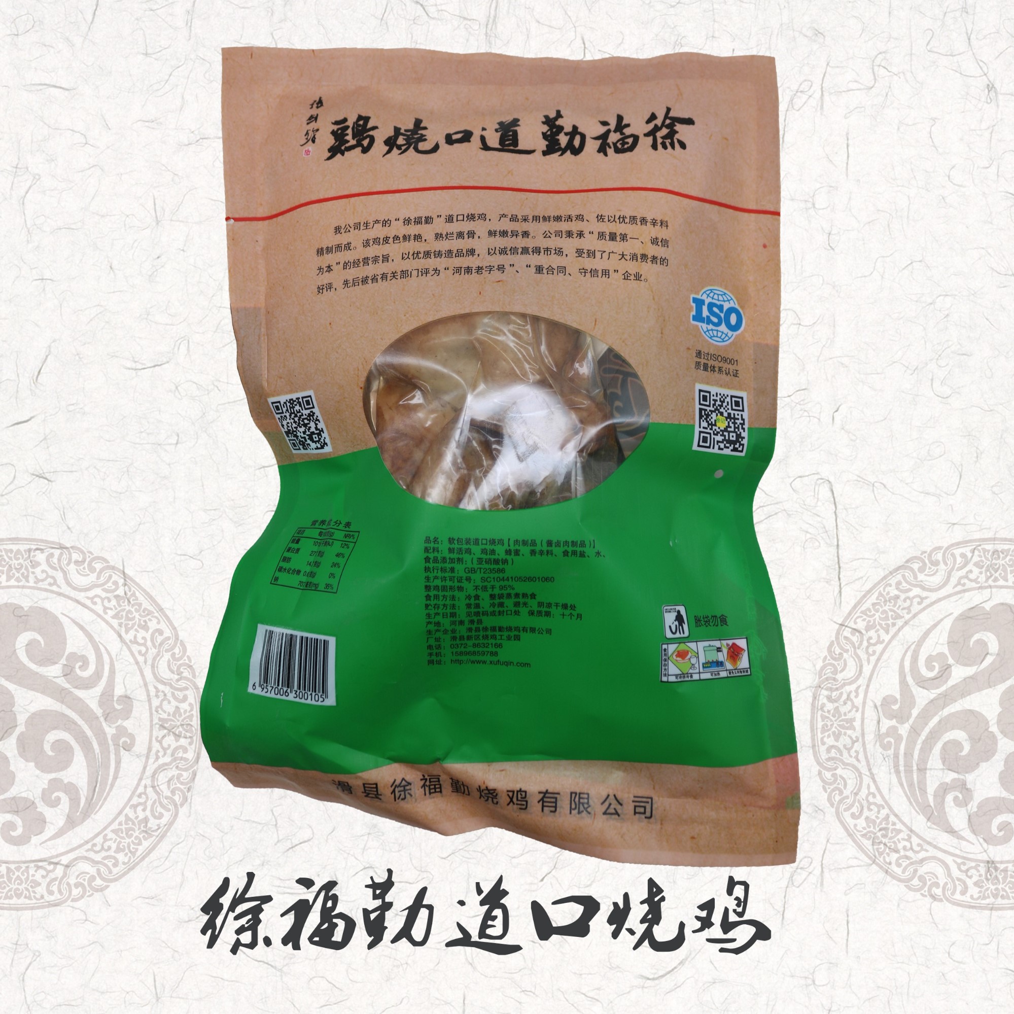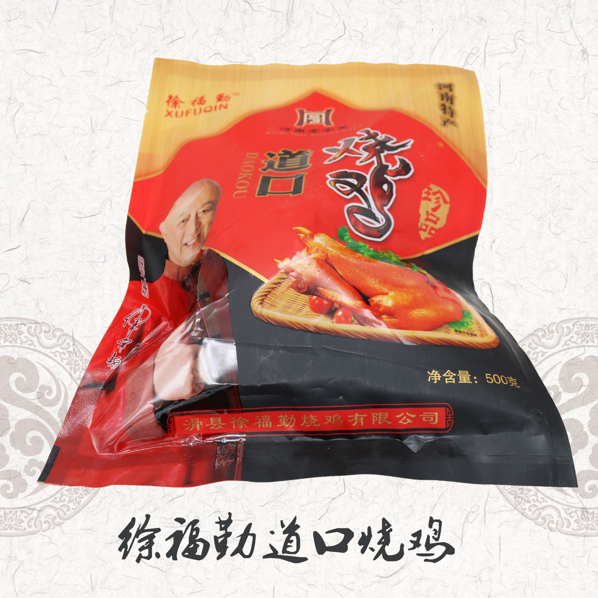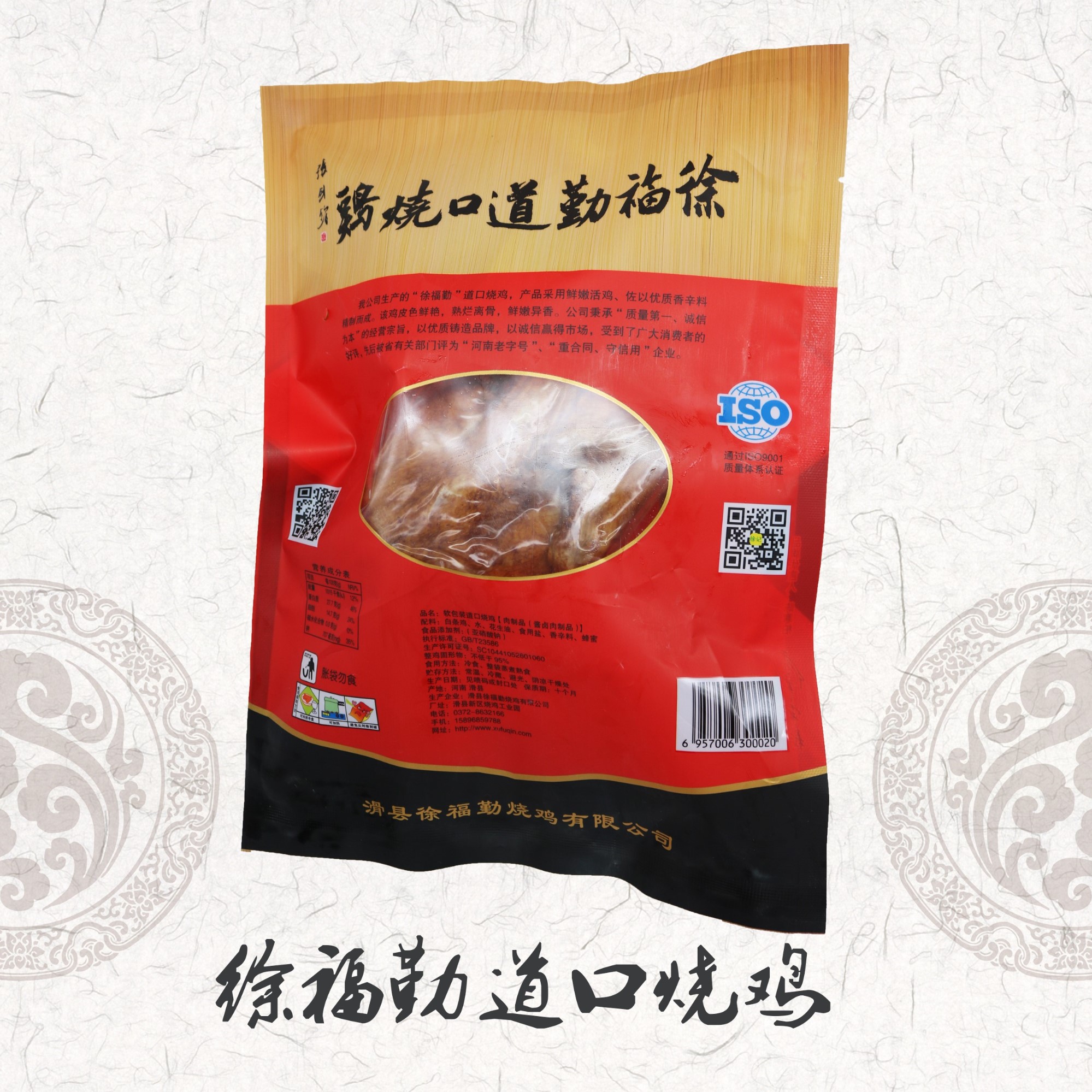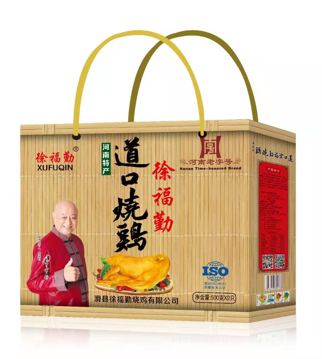 滑縣徐福勤燒雞有限公司,位于滑縣產(chǎn)業(yè)集聚區(qū)燒雞工業(yè)園,占地10畝,私營企業(yè),年生產(chǎn)能力30萬只道口燒雞,2012年注冊商標(biāo)“徐福勤”。 公司為專業(yè)生產(chǎn)道口燒雞系列產(chǎn)品,集生產(chǎn)、加工、銷售、連鎖、加盟于一體的全國性連鎖股份制民營企業(yè),主導(dǎo)產(chǎn)品為道口燒雞系列產(chǎn)品,以河南省為主要市場,輻射全國,擁有直營專賣店20余家,加盟連鎖店100多家。已獲得國家食品生產(chǎn)許可證,通過ISO9001國際質(zhì)量管理體系認(rèn)證。“徐福勤”道口燒雞被授予“國家地理標(biāo)志保護(hù)產(chǎn)品專用標(biāo)志”、“河南省優(yōu)質(zhì)產(chǎn)品”、“河南省著名商標(biāo)”、“中華名吃”等多項(xiàng)榮譽(yù)稱號。祖?zhèn)鳌靶煊洝钡揽跓u被河南省民間藝術(shù)協(xié)會授予“河南老字號”,被河南省商務(wù)廳評定為“河南老字號”;河南省文聯(lián)副主席張劍鋒在品嘗產(chǎn)品之后大加贊譽(yù),親筆題詞“徐記福勤道口燒雞老店”“徐福勤道口燒雞”、“忠厚傳家”。