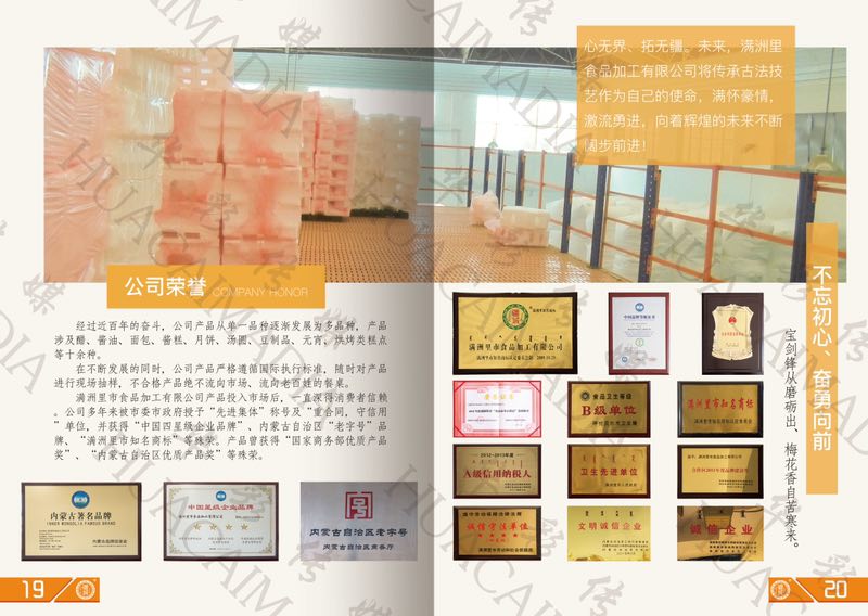 滿洲里市食品加工有限公司是一家集生產(chǎn)加工調(diào)味品、中西式糕點(diǎn)、系列豆制品的獨(dú)資企業(yè),同時(shí)也是經(jīng)民族宗教局備案的清真食品生產(chǎn)企業(yè)。